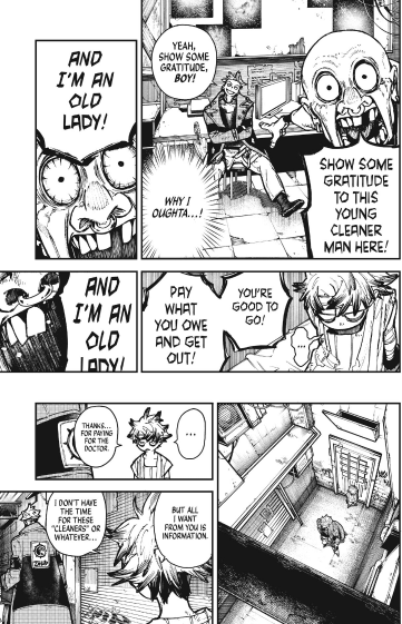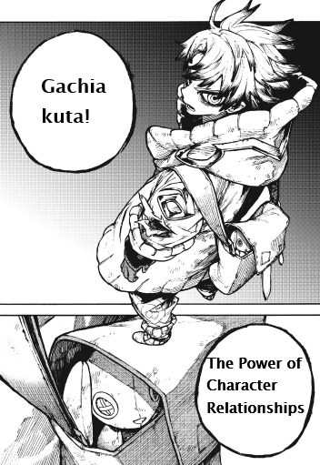 Diction is the bread and butter of dialogue, responsible for getting across the basic information a character is trying to convey, but that doesn’t just mean stating expository details. Things like personality and background can be expounded with word choice, and Urana takes full advantage of that fact in Gachiakuta. The unique qualities of the cast shine through in the words they choose to say.