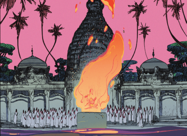 Character designs alone present the themes of aging and mortality extremely creatively in The Many Deaths of Laila Starr, seamlessly allowing interesting points about those topics to surface in an entertaining manner. Darius and his ever-changing look is just one example, but many other members of the cast have designs just as meaningful. The titular Laila Starr’s part-regal, part-trendy look hints at a possible excessive focus on fleeting things, something that becomes tragic when people are face-to-face with their mortality. The scuffed design of the temple sheds light on how loss often coincides with aging. Powerful visuals like those are tools for the comic’s creators, incorporating themes into every panel and helping to make the contemplative narrative thoroughly enjoyable to witness.